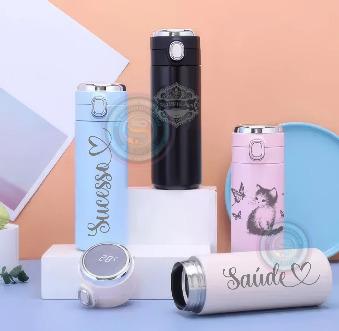 Garrafa Digital Flip 420ml Personalizada com Gravação a Laser – Tecnologia e Estilo em Cada Detalhe.